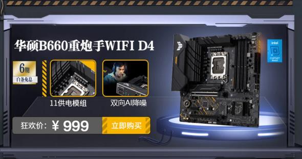 此外,若沒(méi)有無(wú)線需求,可選擇不帶WiFi 6無(wú)線網(wǎng)卡的華碩B660重炮手D4主板,價(jià)格更親民。開門紅秒殺價(jià)不高于949元,同樣12期免息。購(gòu)買鏈接:https://item.jd.com/100031223666.html